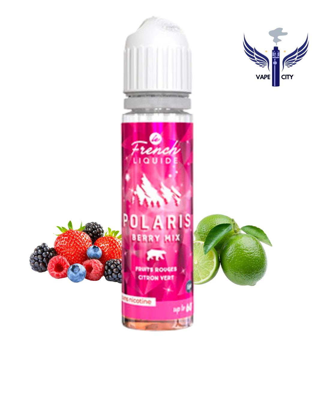 Se trouve le cocktail frais le plus goûtu dans le monde de la vape, en 50 ml! Il se nomme Polaris Berry Mix et contient un cocktail de fruits rouges et un zest de citron vert pour l’acidité.