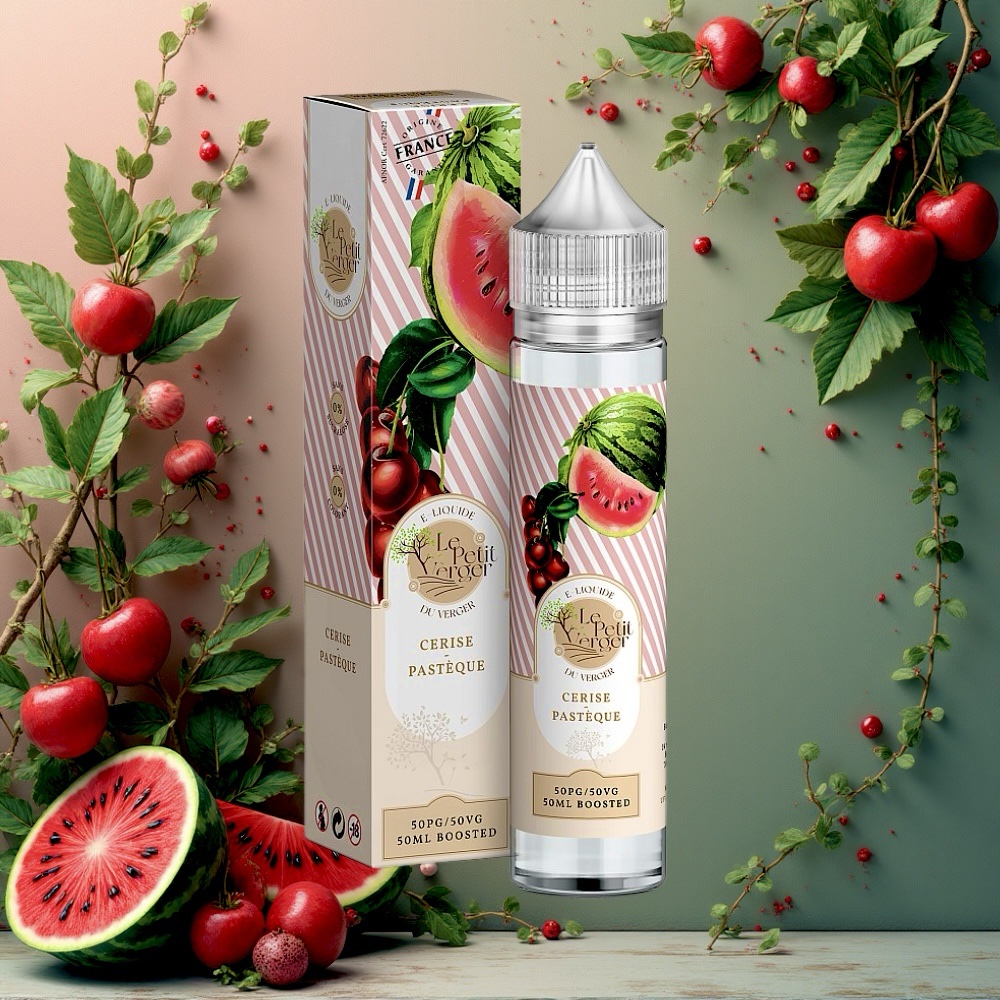Découvrez le e liquide Cerise Pastèque Le Petit Verger 50 ml, un duo de cerise et de pastèque.