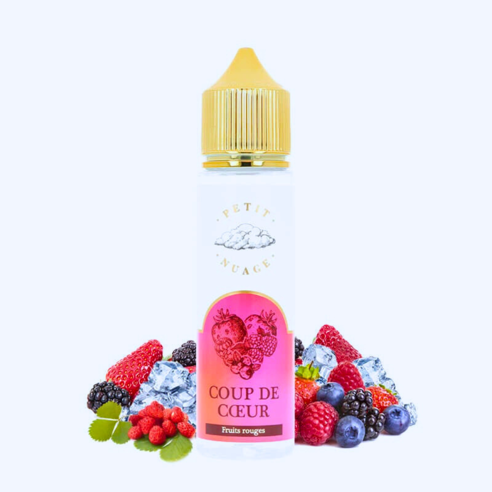 Le eliquide Coup de Coeur : un mix fruité frais qui séduira l’ensemble des vapoteurs. Au sein de cette fiole aux dimensions généreuses, le fabricant français a placé une mixture renversante composée de fraises des bois, de framboises, de mûres et de cassis. Petit Nuage offre une concoction aussi sucrée qu’acidulée, sublimée par une délicate fraîcheur : un must !
