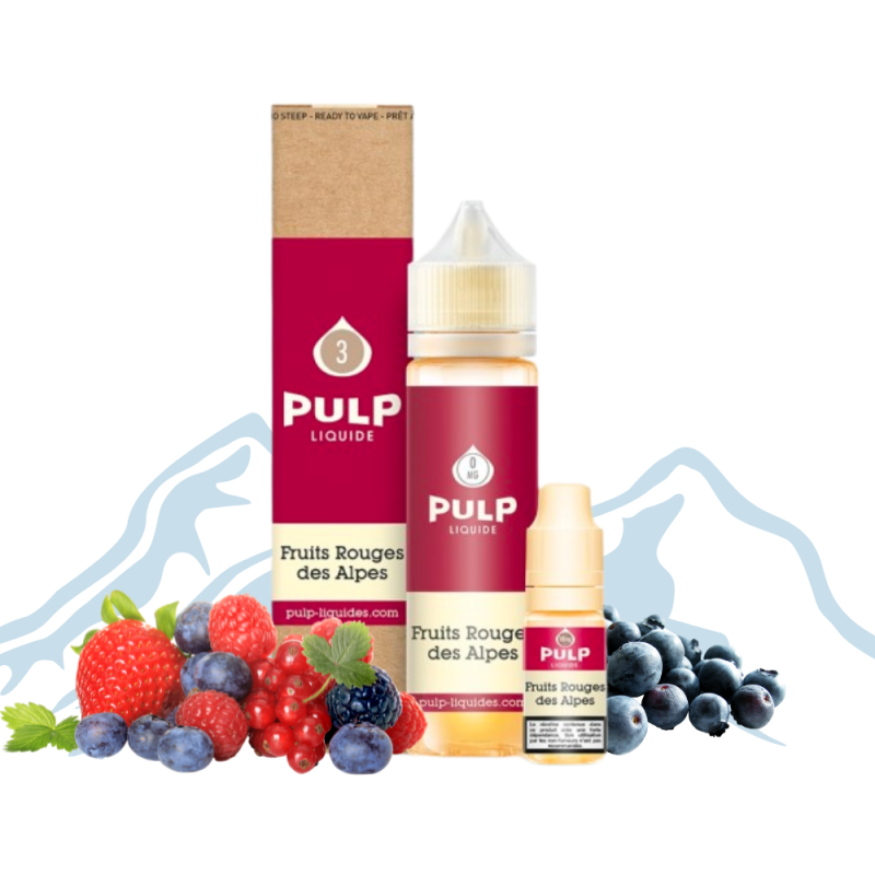 Fruits Rouges des Alpes ! A travers cet eliquide, les amateurs de recettes fruitées ont la possibilité de s’emparer d’un mix percutant de myrtilles fraîches, de cassis au jus puissant et de fraises des bois légèrement sucrées. Avec cette préparation somptueuse, Pulp s’impose auprès des vapoteurs chevronnés en quête de bonnes choses !