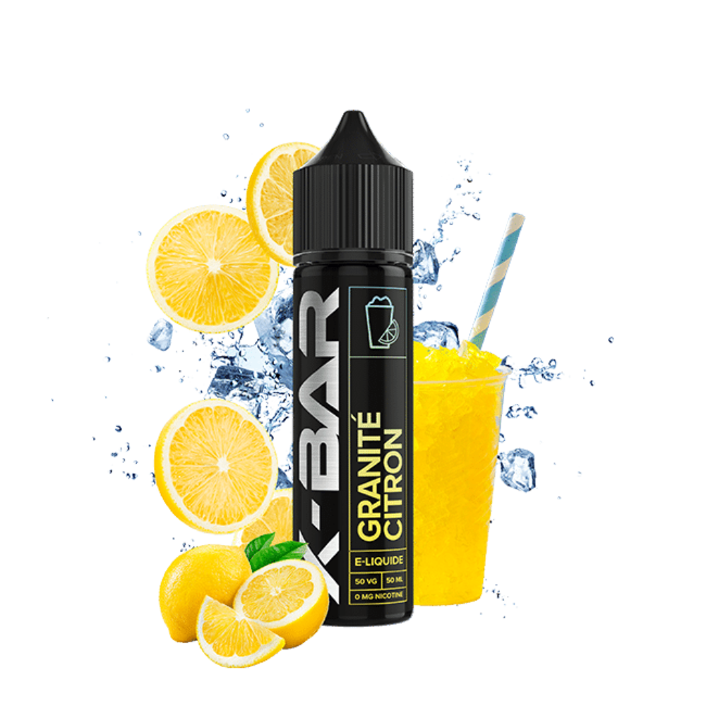 Granite Citron, de la gamme X-Bar, reproduit lasaveurd’un granité citron frais. La gamme X-Bar est connue pour ses e-liquides équilibrés, élaborés avec des arômes de qualité.