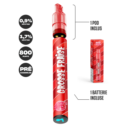 Une saveur aux senteurs « Grosse Fraise » prononcées pour cette Wpuff 2.0 à l’arôme exclusif Liquideo ! Nouveauté à découvrir en 800 puffs !