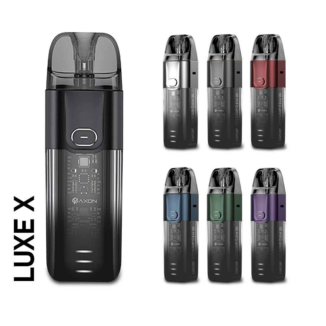 Découvre le pod Luxe X , une vapoteuse compacte et légère qui intègre le chipset Axon avec un écran OLED de 0.42 pouces, super pratique pour suivre tes réglages.