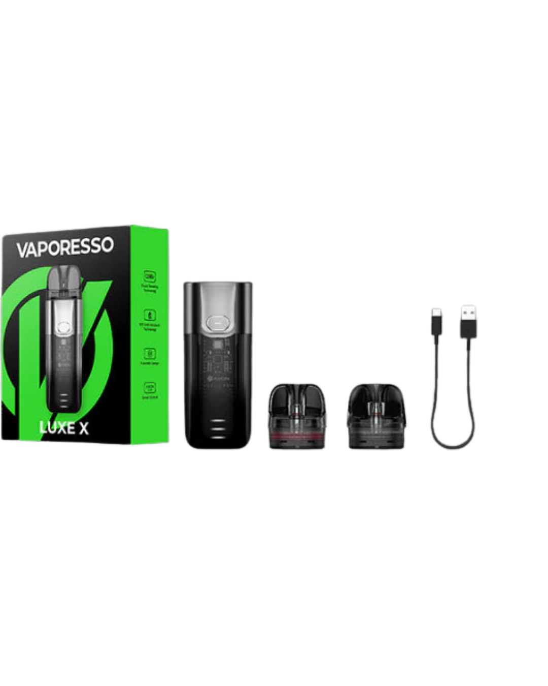 Avec ce pod, tu as une puissance max de 40 watts et des cartouches qui peuvent contenir jusqu’à 5ml. Vaporesso te donne le choix entre les cartouches Luxe X avec des résistances intégrées et les cartouches vides Luxe XR, à utiliser avec les résistances GTX pour plus de flexibilité.Super simple d’utilisation, le Luxe X t’offre la possibilité de vaper soit par tirage manuel, soit automatique pour un max de confort. Tu peux aussi ajuster l’airflow pour avoir un tirage aérien ou plus serré, selon tes préférences.