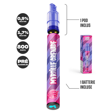 Myrtille Grenade – 800 puffs (1 Batterie + 1 Pod) – WPuff – Liquideo