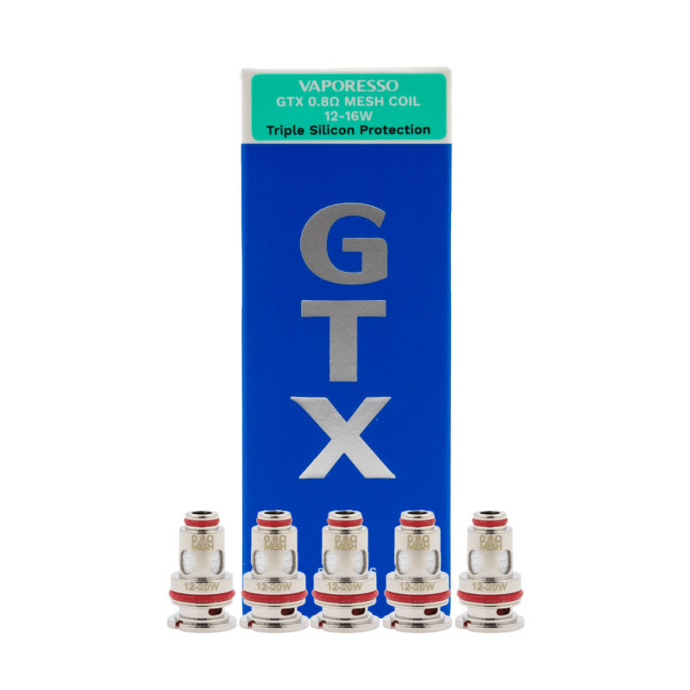• GTX Mesh 0.8 Ω. À utiliser entre 12 et 16 watts. Pour une vape en inhalation indirecte et une consommation modérée.